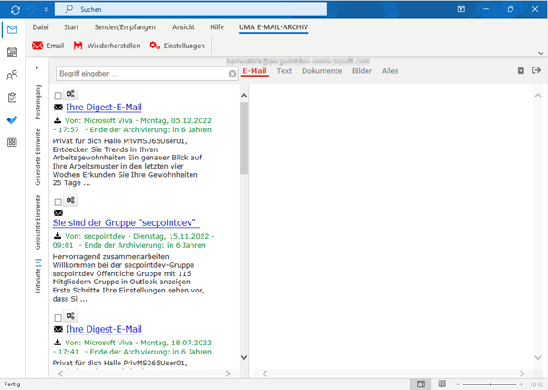 - Schnell nach archivierten E-Mails suchen und diese wiederherstellen.