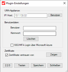 das Zertifikat für das Plugin(ausgestellt von sales@securepoint.de) und das Zertifikat für das UMA akzeptiert werden.