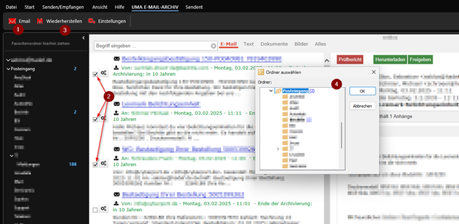 2. E-Mails archivieren (Nur von bedeutung wenn es sich um E-Mails von vor dem 01.10.2024 handelt)